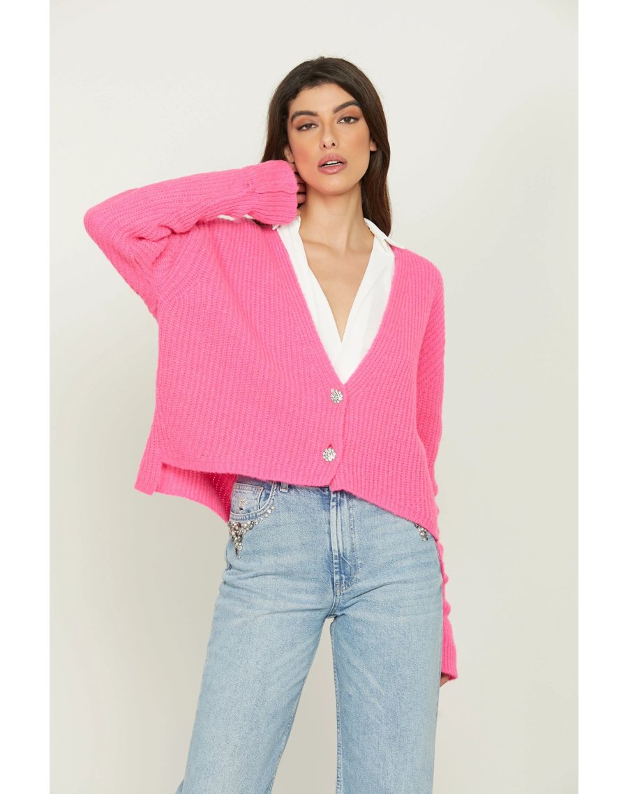 Cardigan fucsia corta botón brillantes